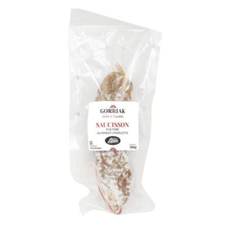 €50.00Add to cartViande de porc, gras de porc, sucres (LACTOSE, sirop de glucose, dextrose), épices, conservateur : nitrate de potassium, sel, poivre, piment doux, piment d’Espelette (0,1%), ail, ferments, boyaux naturels.Origine de la viande : France/Espagne. -